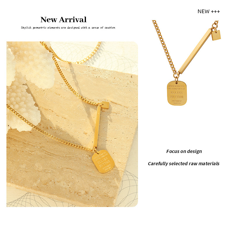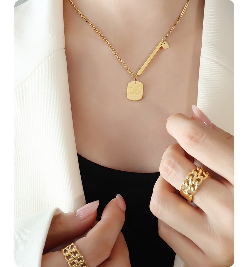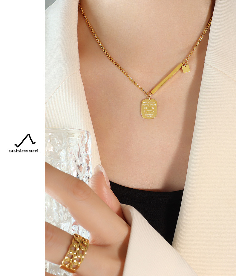 Fashion Hip Hop Square Pendant Titanium Steel Necklace
