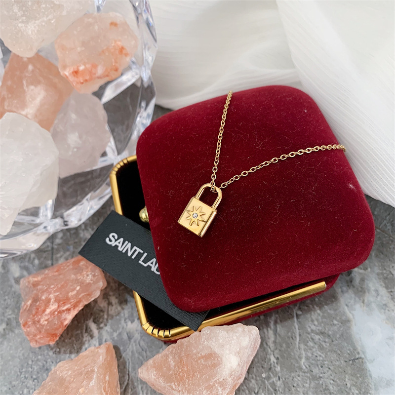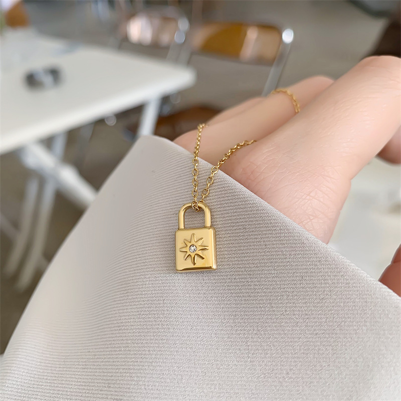 Star Mang lock head titanium steel plated 18k gold clavicle chain compact fashion personality necklace