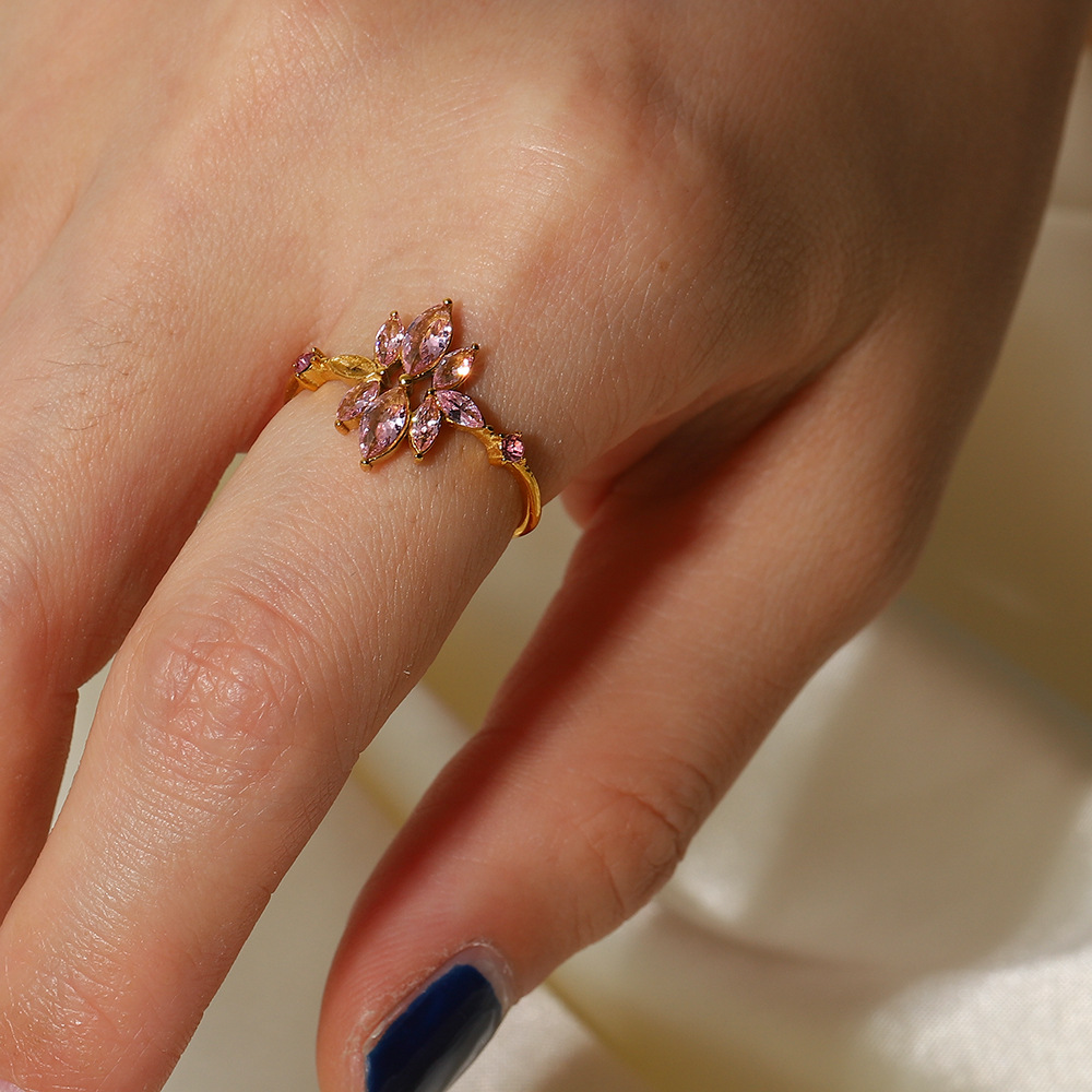 Be the first to review “18K Gold Plated Thin Floral Zircon Ring Stainless Steel Green Zirconium Adjustable ring” Cancel reply