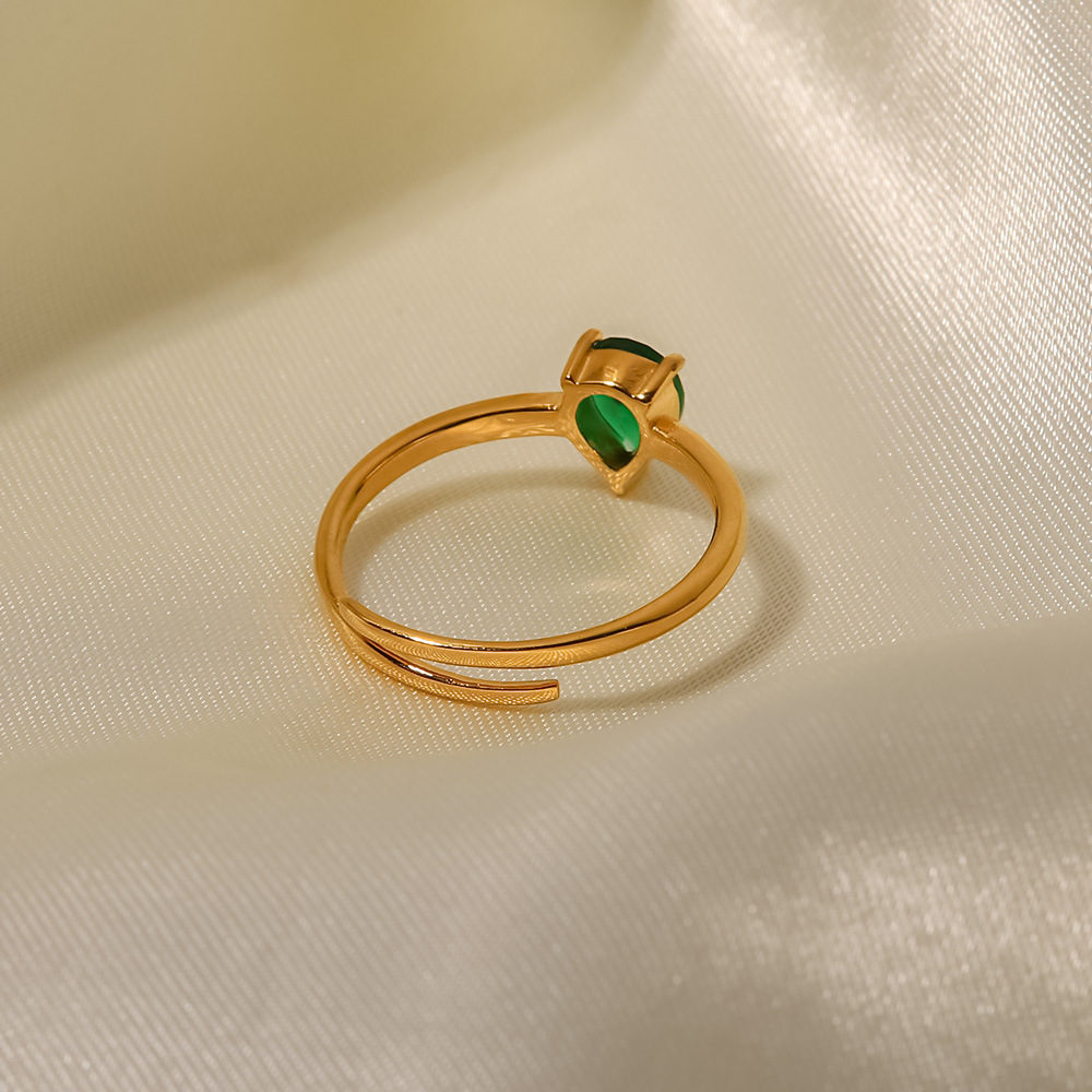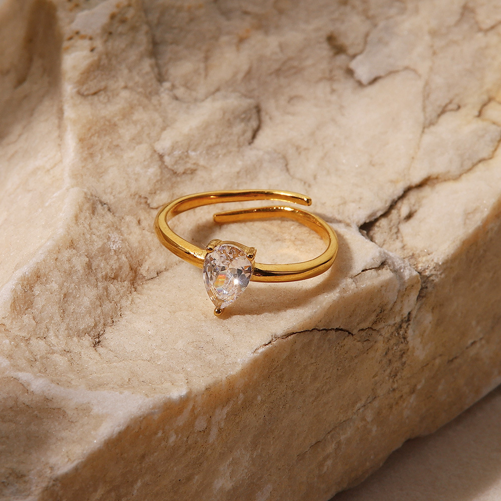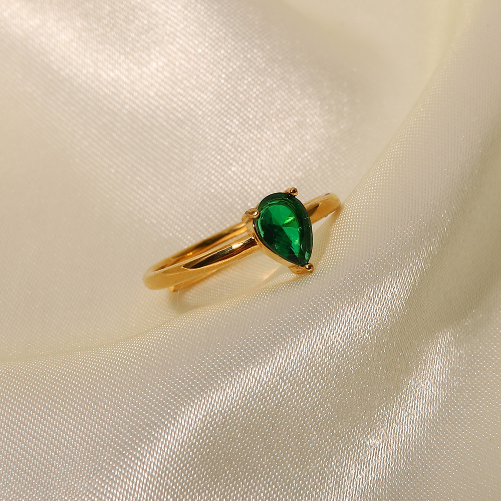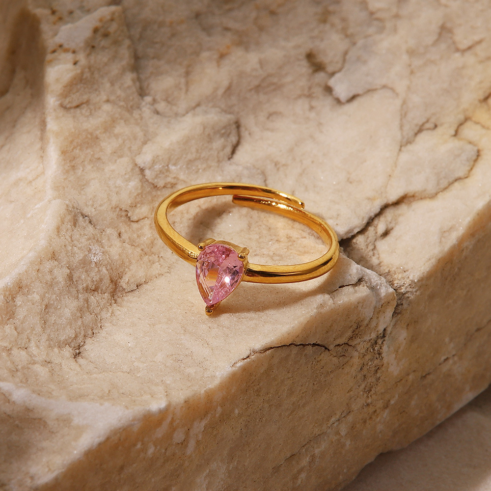 French style Titanium Steel Ring 18K gold white/green/pink water drop shaped Zircon adjustable ring
