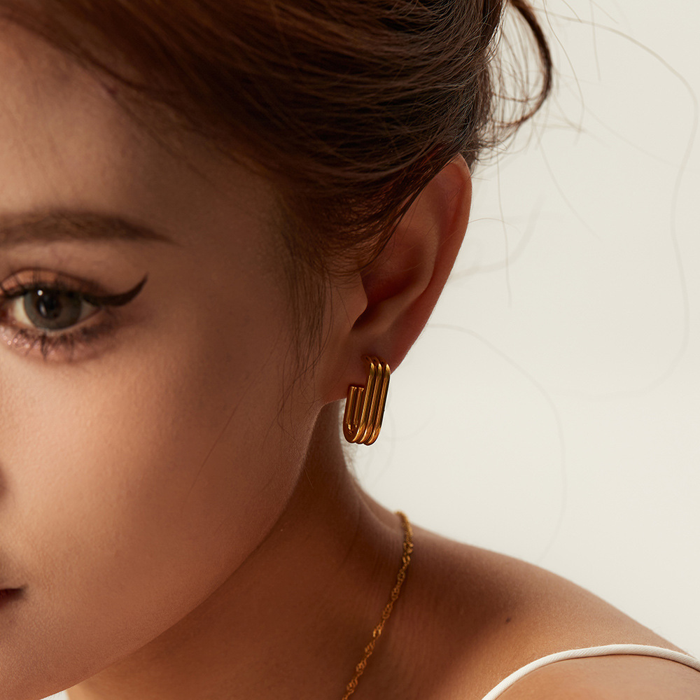 Be the first to review “Titanium Steel Earrings Women’s fashion stainless steel double thick ring U-shaped opening stud earrings” Cancel reply